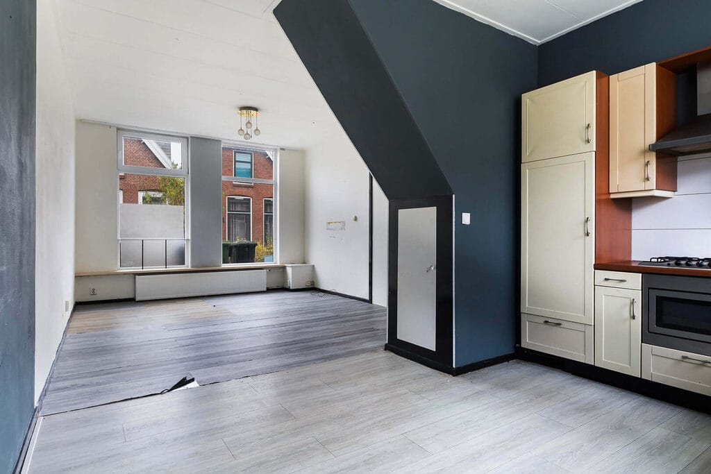 Aan de sfeervolle 1e Rembrandtdwarsstraat in Leeuwarden staat deze karaktervolle eindwoning, een ideale kans voor wie een woning volledig naar eigen smaak wil moderniseren. De basis is goed: een lichte woonkamer, een praktische indeling en drie slaapkamers. Juist doordat de woning eenvoudig is uitgevoerd, biedt zij volop mogelijkheden om hier een eigentijds en comfortabel thuis van te maken. De ligging in een rustige, autoluwe straat net buiten het centrum maakt het plaatje compleet. Alle dagelijkse voorzieningen, winkelpark De Centrale, scholen en sportfaciliteiten bevinden zich op loop- en fietsafstand. Ook het station en het historische centrum zijn snel bereikbaar en via de uitvalswegen bent u zo onderweg richting Drachten, Heerenveen en Groningen.