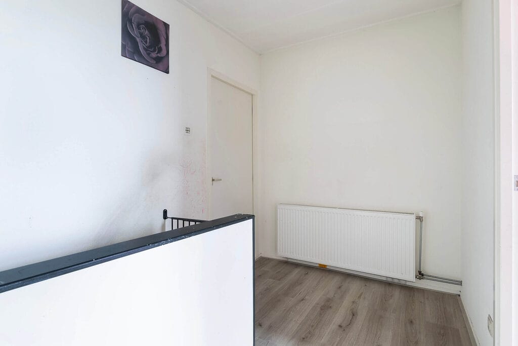 Op de eerste verdieping vindt u een overzichtelijke indeling met een overloop die toegang geeft tot drie slaapkamers. Twee slaapkamers liggen aan de voorzijde, één aan de achterzijde. De kamers zijn praktisch van formaat en veelzijdig in te richten als slaap-, werk- of hobbyruimte. De badkamer is compleet uitgevoerd met een douche, wastafel en toilet.