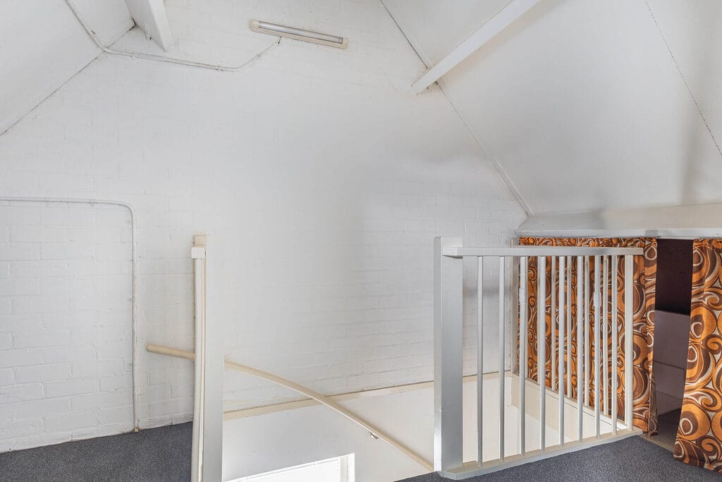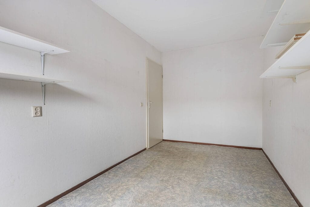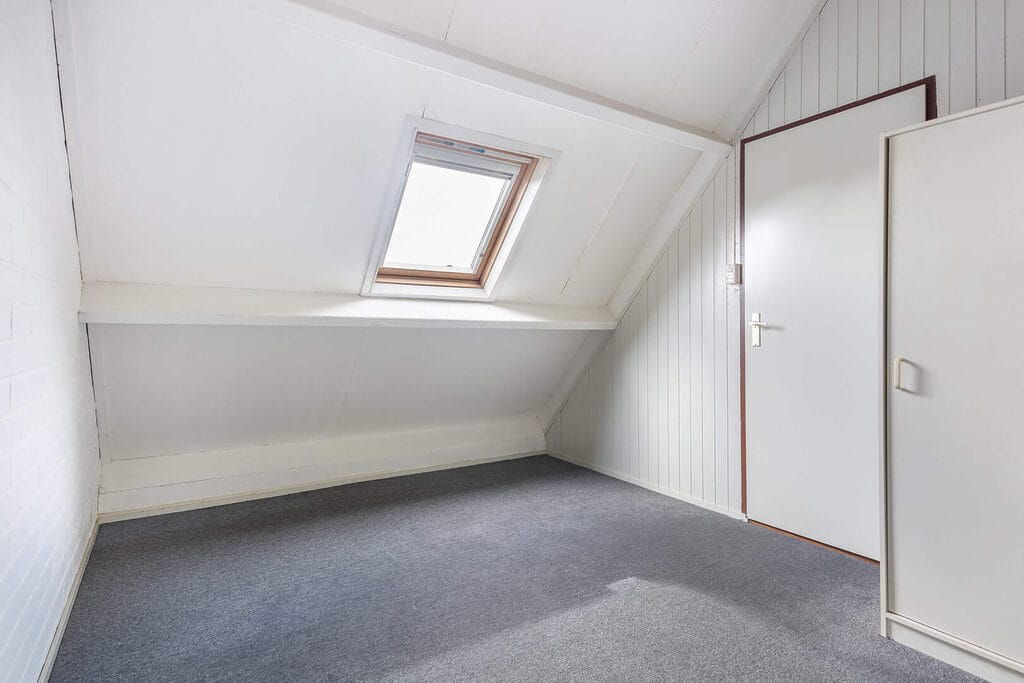 Via de vaste trap bereikt u de tweede verdieping van de woning. Let op: deze verdieping is niet meegenomen in het woonoppervlak, maar telt als overige inpandige ruimte, omdat er volgens de meetinstructies minimaal 0,5 m² dakraam nodig is om dit mee te rekenen – iets wat hier ontbreekt. Desondanks is het een volwaardige verdieping met een ruime hal voorzien van knieschotten voor extra opbergruimte en een royale slaapkamer, waardoor het een praktische en comfortabele uitbreiding van de woonruimte biedt.