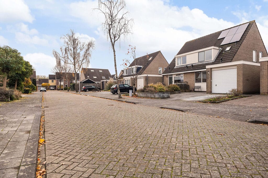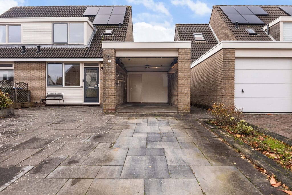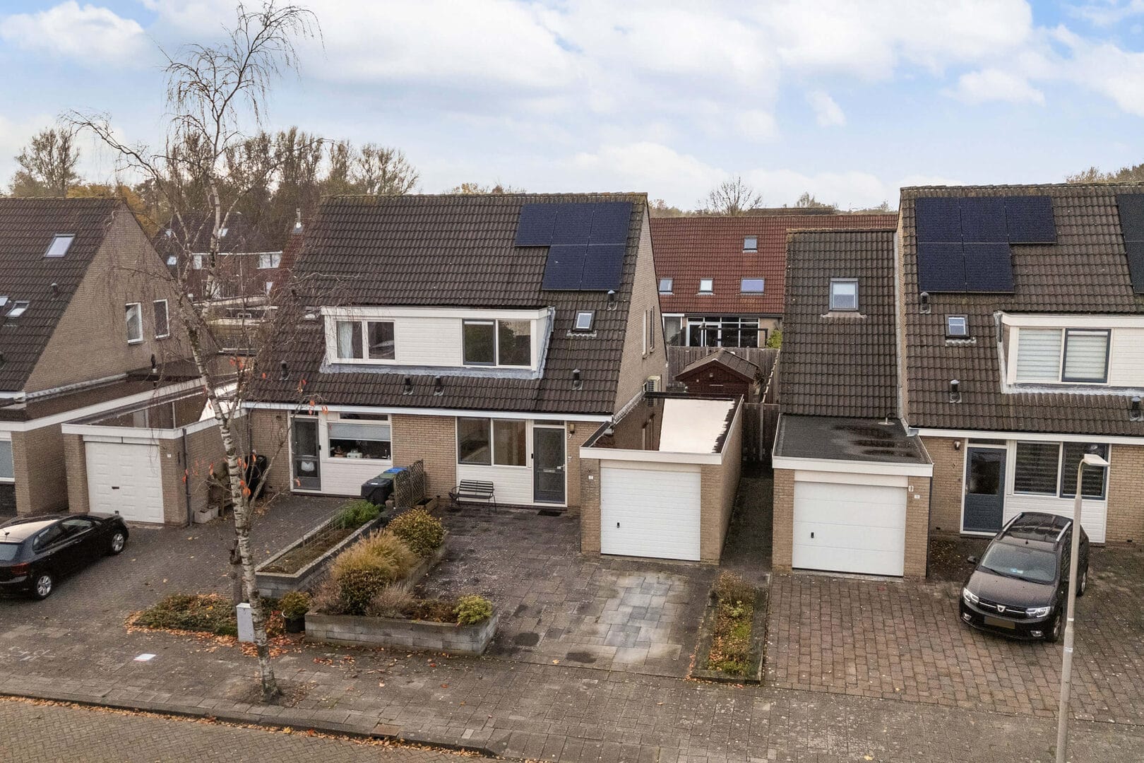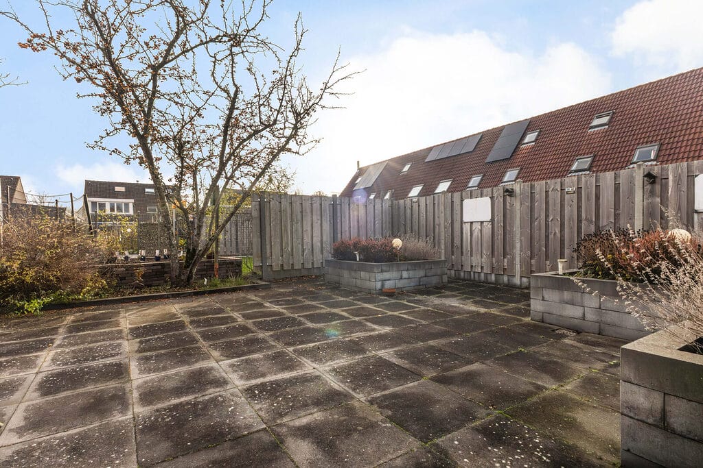 Bij aankomst kun je de auto gemakkelijk op eigen terrein parkeren, in de royale garage met elektrische deur zetten of de fiets handig via de achterom meenemen. Vanuit de entree heb je toegang tot de keuken, de tuingerichte woonkamer, het separate toilet, de meterkast, de trapopgang naar de verdieping en de praktische bijkeuken die doorloopt naar de garage. De ruime woonkamer valt direct op door de grote raampartijen, het vele daglicht en het uitzicht op de tuin, en is voorzien van een vaste (trap)kast, airco en een deur naar de zonnige achtertuin. Aan de voorzijde grenst de woonkamer aan de royale keuken, die – voor wie dat wenst – eenvoudig bij de woonkamer te betrekken is door de tussenmuur te verwijderen. De keuken is uitgerust met diverse inbouwapparatuur, waaronder een 4-pits inductiekookplaat, koelkast met 3-laden vriezer en een oven, en biedt volop kastruimte. In de bijkeuken is plaats voor de wasmachine en droger en bevindt zich de CV-ketel (Intergas, 2015), evenals een extra deur naar de achtertuin. Deze diepe tuin op het westen is momenteel volledig betegeld, voorzien van stenen plantenbakken, een nette erfafscheiding en een praktische berging, en biedt meerdere terrassen waar je tot in de late avonduren van de zon kunt genieten.