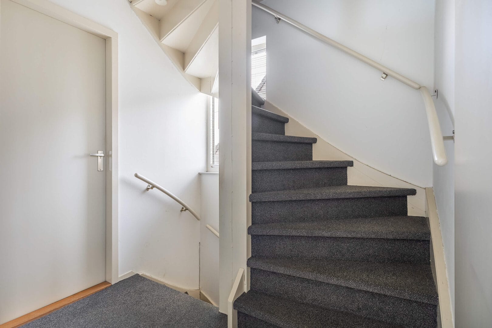 Via de vaste trap bereikt u de tweede verdieping van de woning. Let op: deze verdieping is niet meegenomen in het woonoppervlak, maar telt als overige inpandige ruimte, omdat er volgens de meetinstructies minimaal 0,5 m² dakraam nodig is om dit mee te rekenen – iets wat hier ontbreekt. Desondanks is het een volwaardige verdieping met een ruime hal voorzien van knieschotten voor extra opbergruimte en een royale slaapkamer, waardoor het een praktische en comfortabele uitbreiding van de woonruimte biedt.