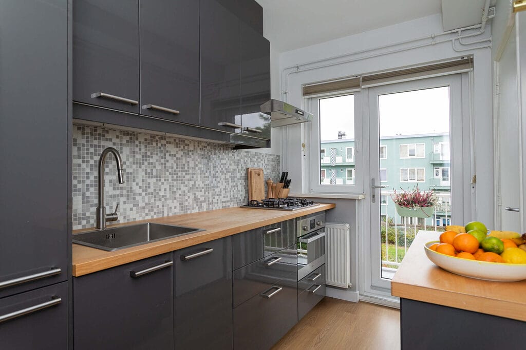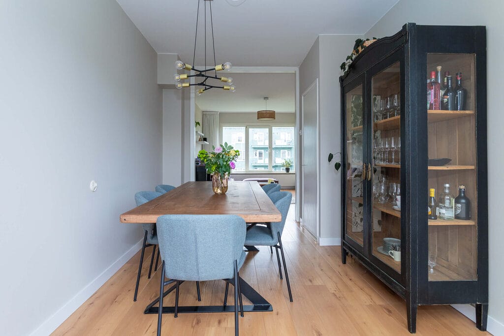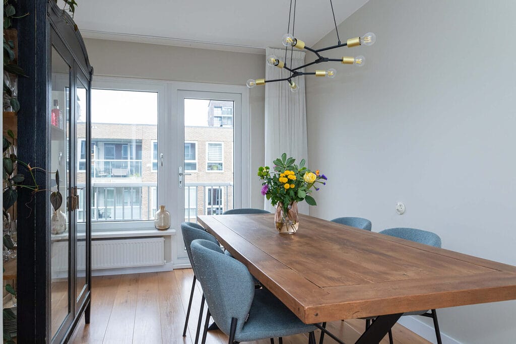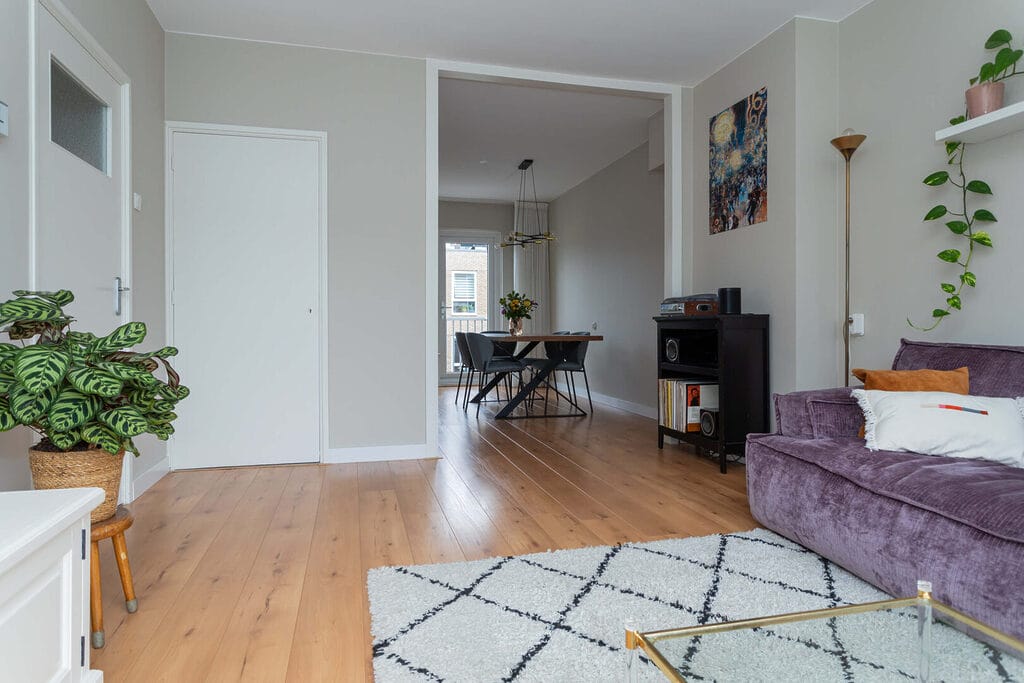 Via de trap bereikt u deze sfeervolle woning, waar u in een ruime hal staat die toegang biedt tot de woonkamer, keuken, slaapkamer, het separate toilet en de meterkast (2016). De woonkamer valt direct op door de strak gestuukte muren, grote ramen en de overvloedige lichtinval, gecombineerd met nette laminaatvloeren en een vaste kast. Het is verdeeld in een woonkamer en eetkamer, waarbij de eetkamer zich uitstekend leent om een tweede slaapkamer te creëren. Vanuit de achterzijde van de woning is een balkon bereikbaar. De moderne keuken (2021) beschikt over diverse inbouwapparatuur, waaronder een koelkast met 3-laden vriezer, een 4-pits gasstel en een combioven (2023), met voldoende bergruimte voor al uw keukengerei. Voor de zonnige dagen is er een tweede balkon op het westen, ideaal om na werktijd van het buitenleven te genieten. De badkamer is uitgevoerd met een granito vloer, inloopdouche, designradiator en wastafelmeubel, terwijl de slaapkamer veel daglicht ontvangt door de grote raampartijen en eveneens een nette laminaatvloer heeft.