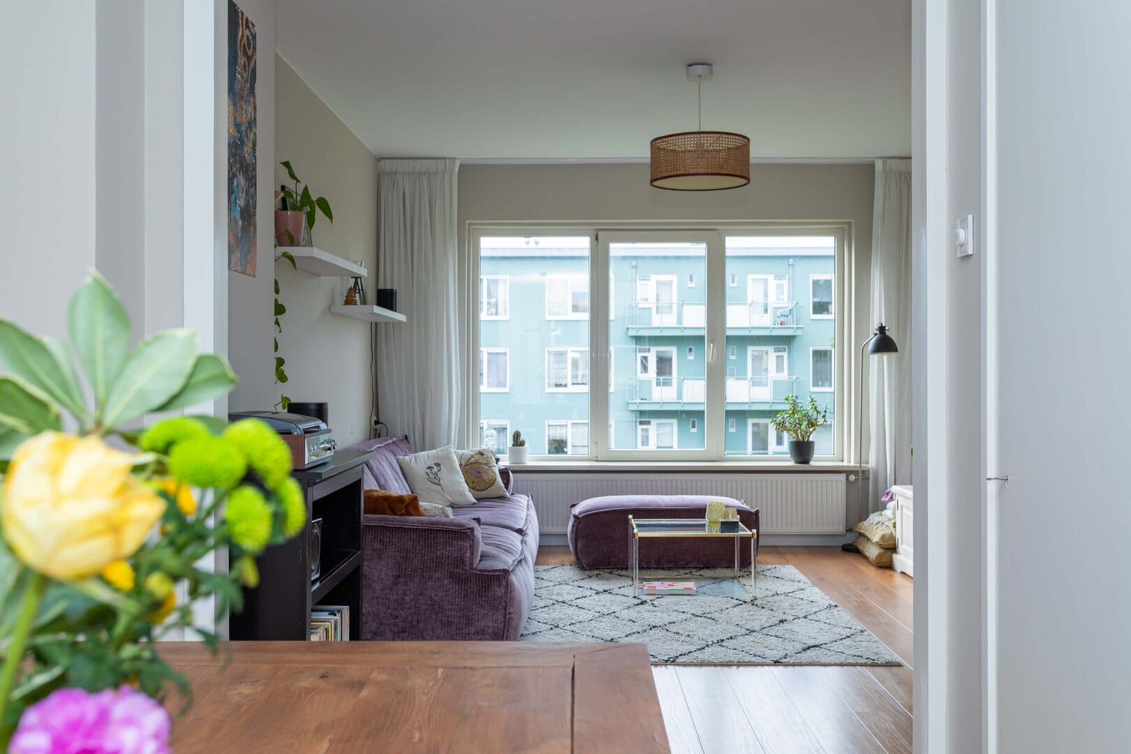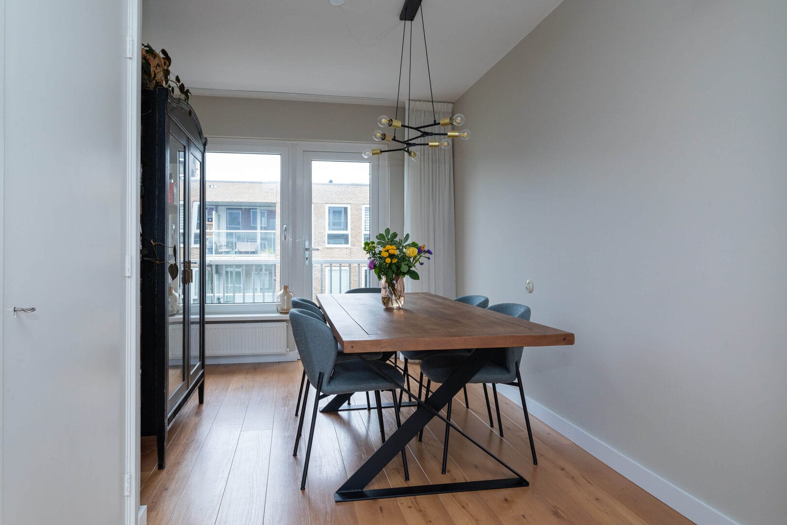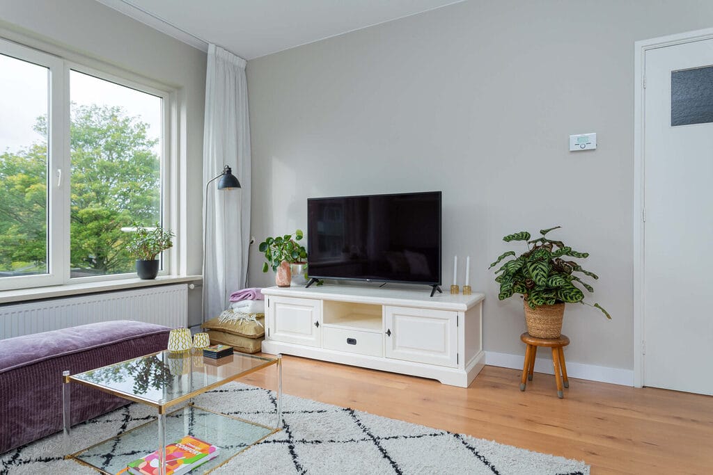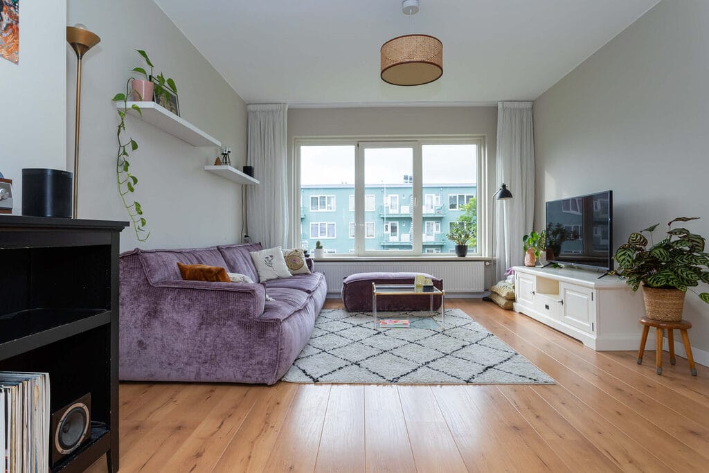 Via de trap bereikt u deze sfeervolle woning, waar u in een ruime hal staat die toegang biedt tot de woonkamer, keuken, slaapkamer, het separate toilet en de meterkast (2016). De woonkamer valt direct op door de strak gestuukte muren, grote ramen en de overvloedige lichtinval, gecombineerd met nette laminaatvloeren en een vaste kast. Het is verdeeld in een woonkamer en eetkamer, waarbij de eetkamer zich uitstekend leent om een tweede slaapkamer te creëren. Vanuit de achterzijde van de woning is een balkon bereikbaar. De moderne keuken (2021) beschikt over diverse inbouwapparatuur, waaronder een koelkast met 3-laden vriezer, een 4-pits gasstel en een combioven (2023), met voldoende bergruimte voor al uw keukengerei. Voor de zonnige dagen is er een tweede balkon op het westen, ideaal om na werktijd van het buitenleven te genieten. De badkamer is uitgevoerd met een granito vloer, inloopdouche, designradiator en wastafelmeubel, terwijl de slaapkamer veel daglicht ontvangt door de grote raampartijen en eveneens een nette laminaatvloer heeft.