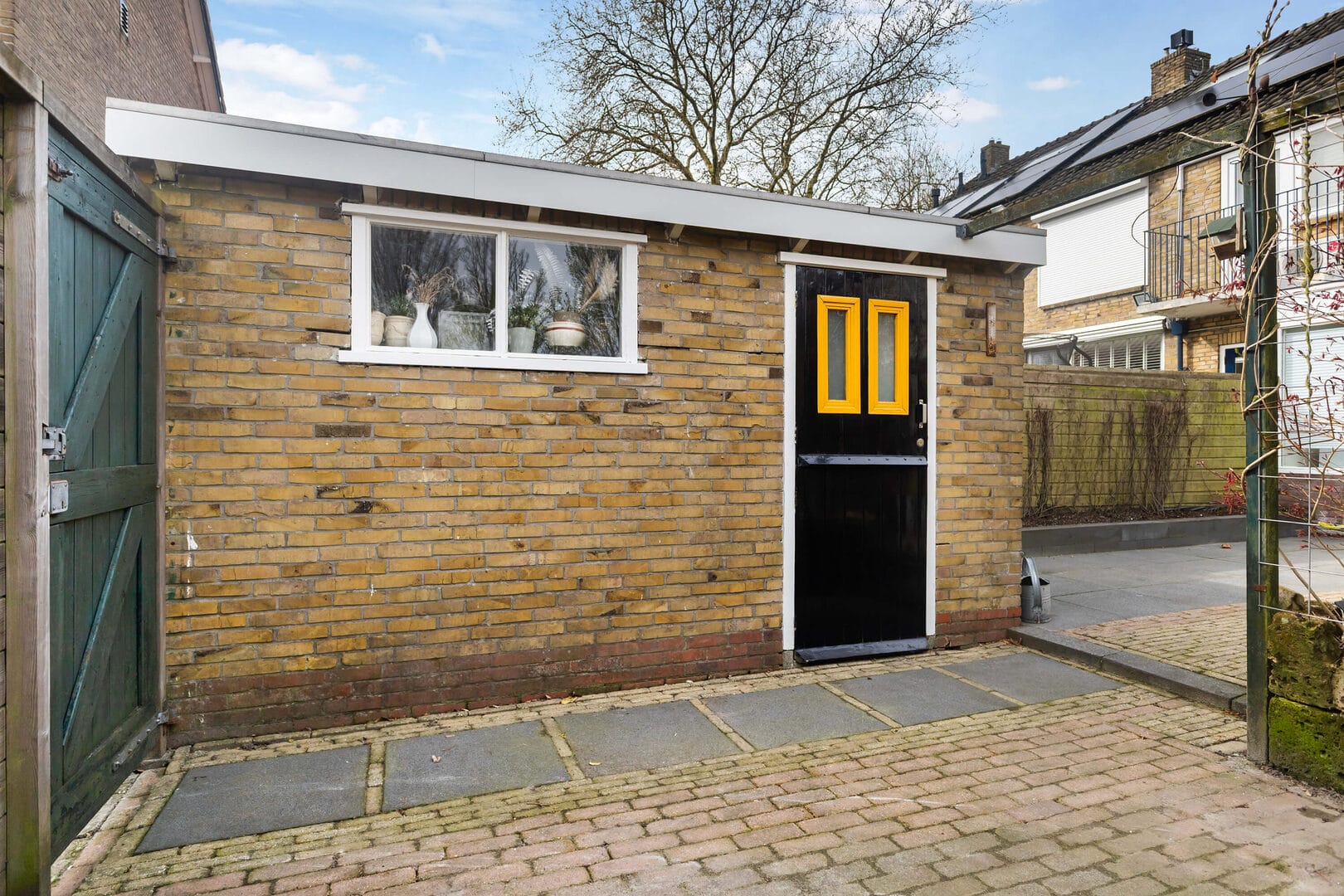 *Diepe achtertuin met berging en achterom