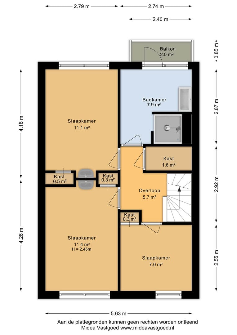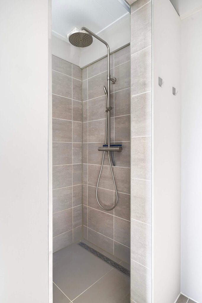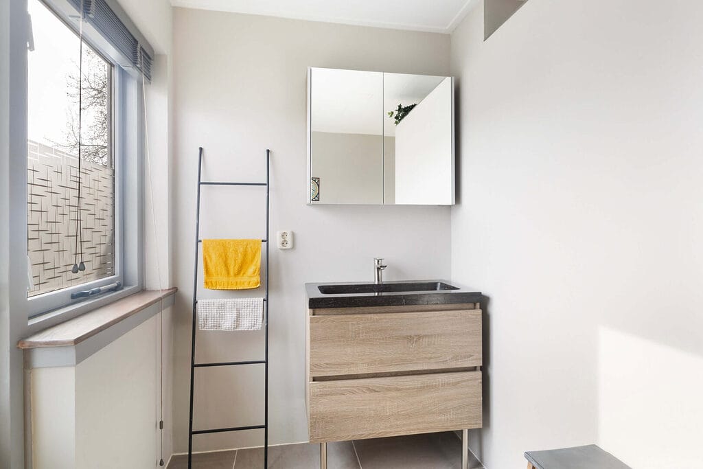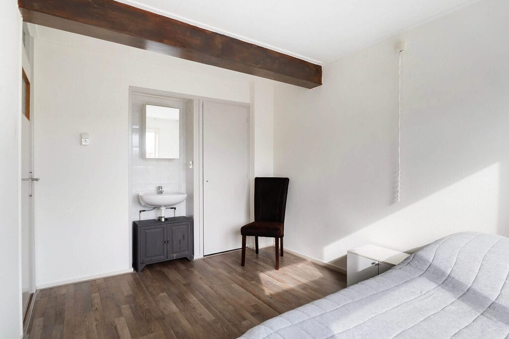 Via de trap in de hal kom je op de ruime overloop van de eerste verdieping, waar je toegang hebt tot drie ruime slaapkamers. Alle kamers beschikken over een fijne lichtinval en de twee grootste slaapkamers zijn voorzien van vaste kasten en een eigen wastafel, wat zorgt voor extra comfort en gebruiksgemak. De gemoderniseerde en ruime badkamer is netjes afgewerkt en beschikt over een inloopdouche met zowel stort- als handdouche, een design wastafelmeubel en een designradiator. Vanuit de badkamer heb je tevens toegang tot een balkon. Op de plek waar voorheen de badkamer zat, is door de huidige eigenaren een ruim separaat toilet gerealiseerd, wat deze verdieping extra praktisch maakt in het dagelijks gebruik.