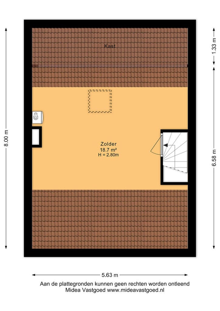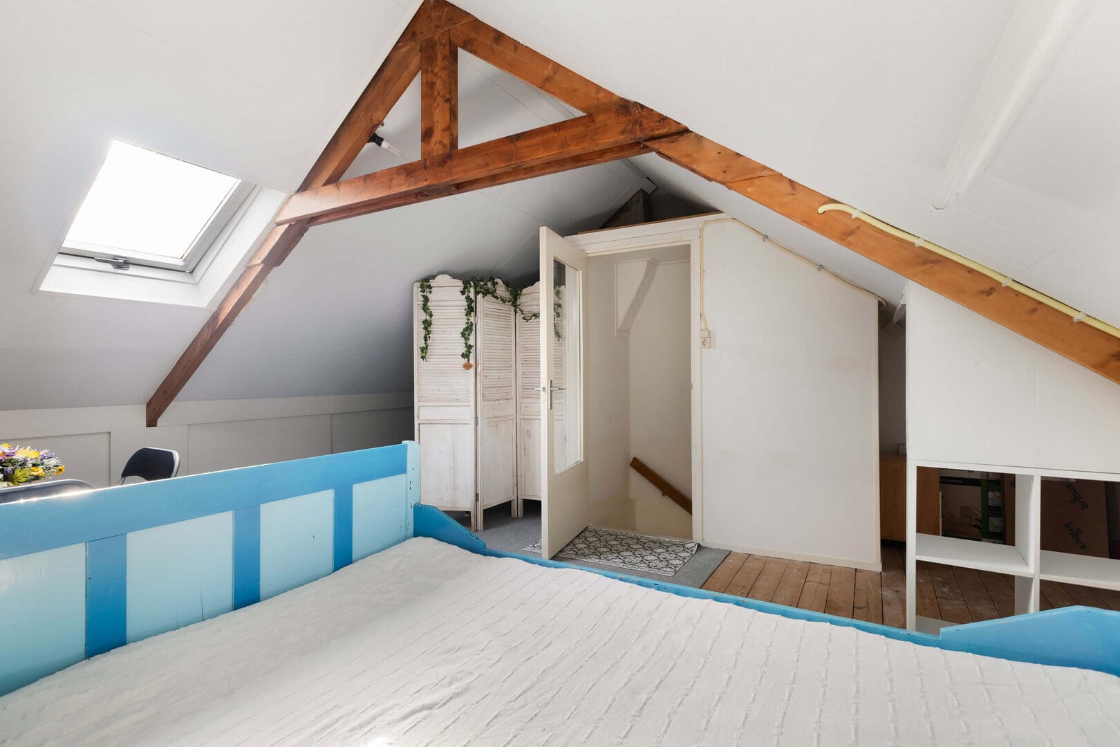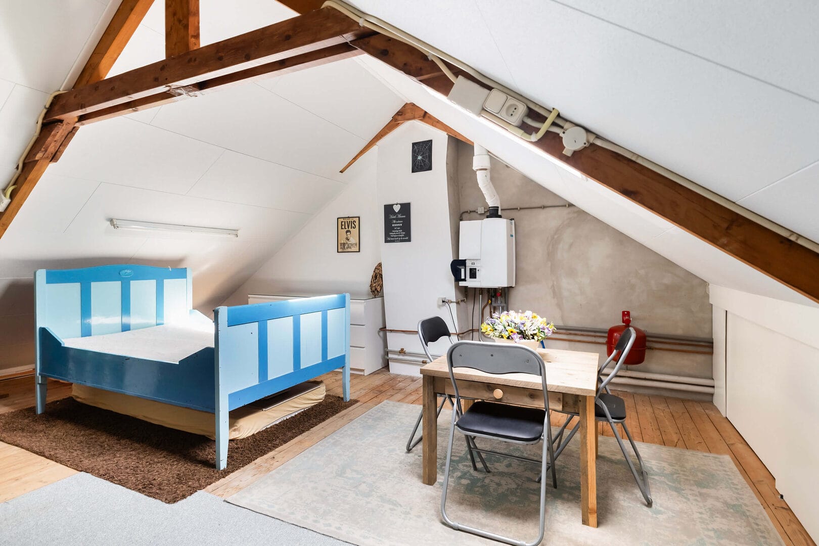 Via de vaste trap bereik je de tweede verdieping, een verrassend ruime etage die momenteel is ingericht als één grote slaapkamer. Deze ruimte biedt echter volop mogelijkheden en kan met gemak worden opgesplitst in twee volwaardige slaapkamers, waardoor de woning nog flexibeler wordt in gebruik. De verdieping wordt nu aangemerkt als overige inpandige ruimte, maar zou bij plaatsing van een groter dakraam eenvoudig als woonoppervlakte kunnen worden meegeteld. Daarnaast is er hier volop bergruimte aanwezig, ideaal voor het netjes opbergen van spullen, en bevindt zich op deze verdieping tevens de opstelplaats van de cv-ketel (ATAG, 2014).