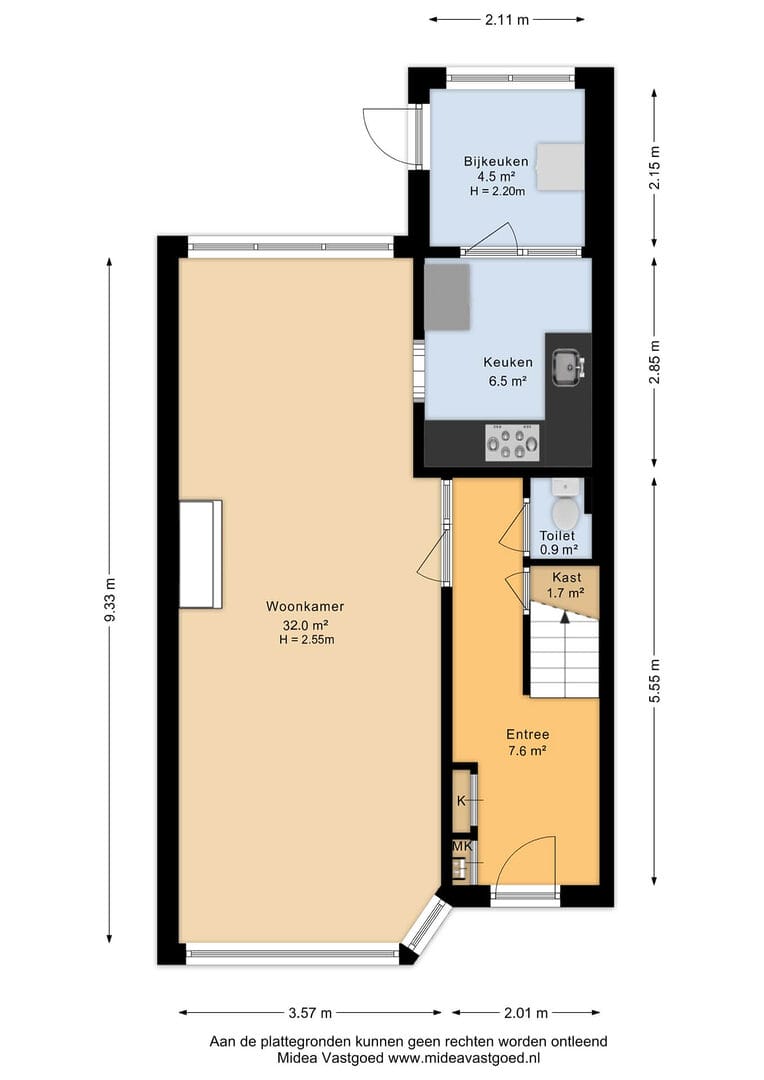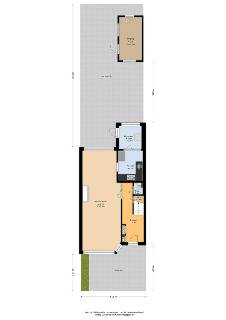 Via de entree kom je binnen in de hal met toegang tot de meterkast, een nette toiletruimte, een ruime vaste kast/kelderkast en de trapopgang naar boven. Vanuit de hal stap je de verrassend ruime woonkamer binnen, die wordt gekenmerkt door de mooie schouw en nette vloeren en voldoende ruimte biedt voor zowel een comfortabele zithoek als een royale eethoek. Aan de achterzijde bevindt zich de half open keuken, die praktisch is ingericht en beschikt over diverse inbouwapparatuur, waaronder een oven en een 5-pits gasstel, evenals voldoende werk- en bergruimte. Aansluitend vind je de bijkeuken, ideaal voor extra opslag en de witgoedopstelling, voorzien van een kunststof deur naar buiten. De achtertuin is ruim van opzet en biedt door de ligging op het oosten gedurende de hele dag wel een plek in de zon op één van de terrassen, waardoor je ook na het werk heerlijk kunt genieten buiten. Daarnaast beschikt de tuin over een praktische achterom, ideaal voor de fiets, en een ruime berging, perfect voor de klusser of extra opslag.