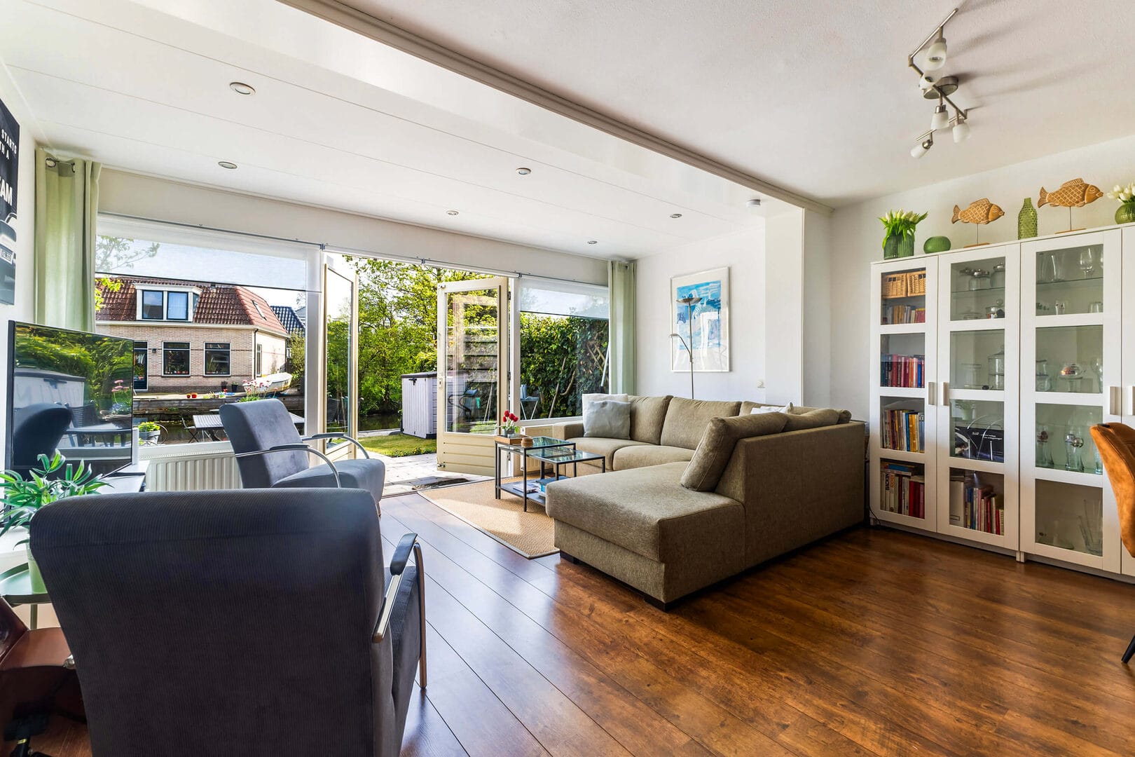 Droom jij van wonen aan open vaarwater, waar je op elk moment van de dag zó in je boot stapt en de Friese meren op vaart? Dan is deze verrassend ruime en energiezuinige eengezinswoning in het gezellige watersportdorp Grou precies wat je zoekt. De woning ligt direct aan doorgaand vaarwater en biedt daarmee een unieke combinatie van vrijheid, rust en levendigheid.