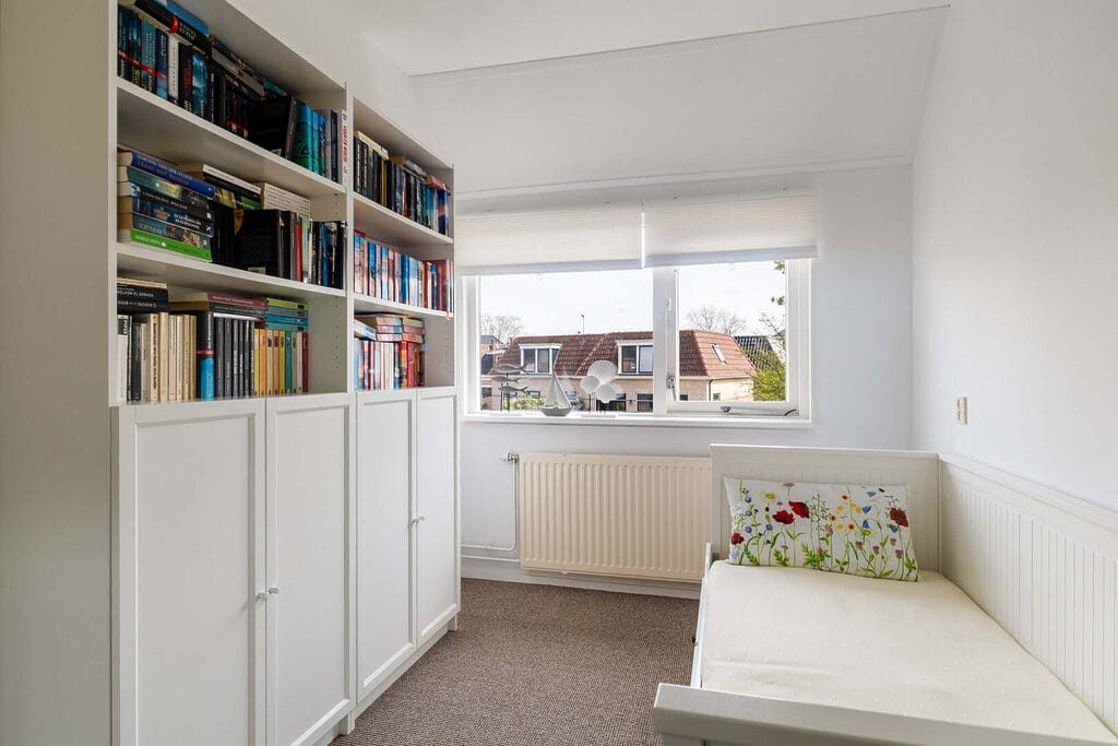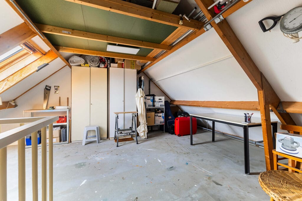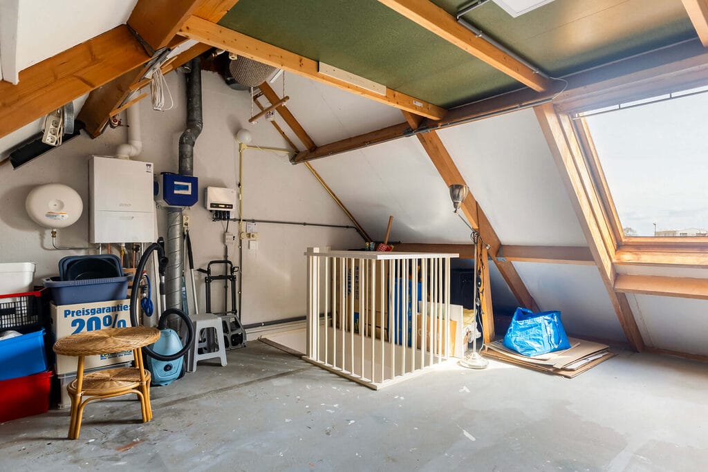 Via een vaste trap bereik je de tweede verdieping met een ruime (potentiële) vierde slaapkamer. Deze kamer is multifunctioneel en geschikt als slaap-, werk- of hobbyruimte. Dankzij het dakraam is er aangenaam daglicht aanwezig. Extra praktisch is de aanwezige vide, ideaal voor het opbergen van spullen. Daarnaast vind je hier de opstelling van de CV-ketel, de omvormer en de mechanische ventilatie.